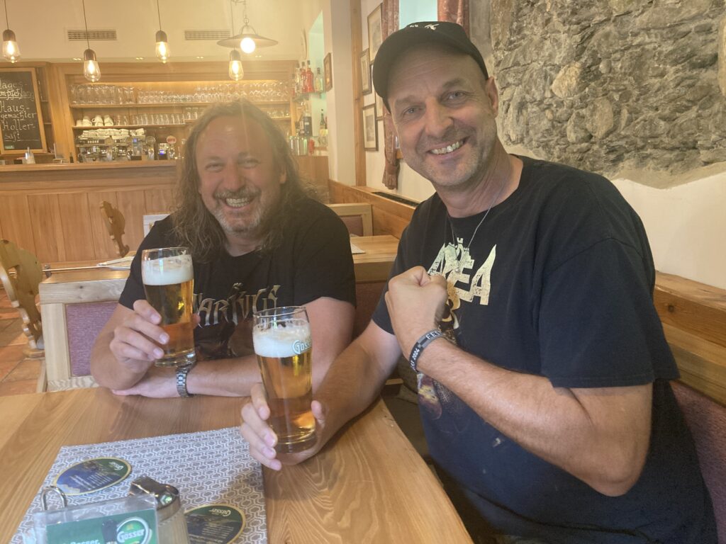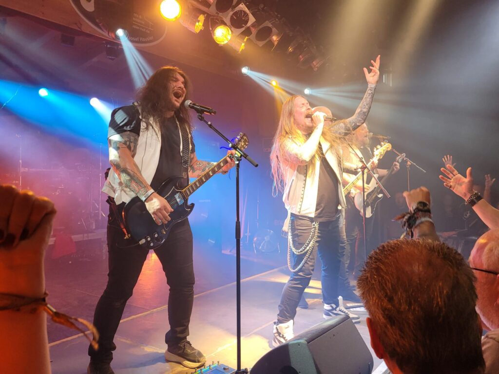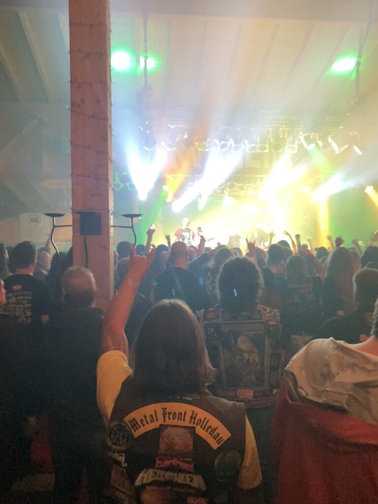 Los geht die Fahrt in‘s Blaue, Mike hat keine Ahnung wohin💪😅Pinkelpause hinter Nürnberg, da fallen schon einige Konzerthallen weg😉……gegen den Wind…….brandgefährlich heute🤣🤣im Landgasthof ‚zur Rose‘ in Prühl kurz vor Geiselwind lüften wir das Geheimnis und der Mike wird neu eingekleidet!💪🤘was für ein geiler Rehbraten plus Hofmann Helles, geht scho super los😍auf geht’s in die Strohofer Music Hall. Unser Erstbesuch aber mit Sicherheit nicht der letzte🤩🤩🤩während im Vorzimmer die Hells Bells läuten………..……wird der Mike neu eingekleidet, der Präser natürlich auch😂🙈💪💪🤘All for Metal heizen ein, ziemlich coole Mucke!unser Konzertplatz ist gefunden, danach geht’s mit Crownshift weiter, New Metal……….wer‘s mag🤷♂️die Location ist überragend, ob Arena oder auf der Galerie, hier findet jeder sein Platzerl💪gleich kommt der Headliner😍😍Prost Jungs, auf‘n Udo und den Peter und alle Members vom Dirkschneider …..uns Udo räumt wieder gnadenlos ab, ein Kracher jagt den nächsten, sensationell 💪💪💪🤘🤘🤘🤘eine kleine Verschnaufspause bei Cold Winterdreams…..😅😅dann eskaliert‘s bis zur letzten Zugabe……….…..Burning, Burning, Burning just like Fire, Burning, Burning…….a Rock‘n Roll Desire…🤘🤘😍😍😍was für ein saugeiler Abend in Geiselwind, mit gefangenem Schlagzeugstecker und Plektrum vom Peter Baltes treten die drei von der Metal Front Holledau die Heimreise an………a Rock‘n Roll Desire🤘🤘😍😍