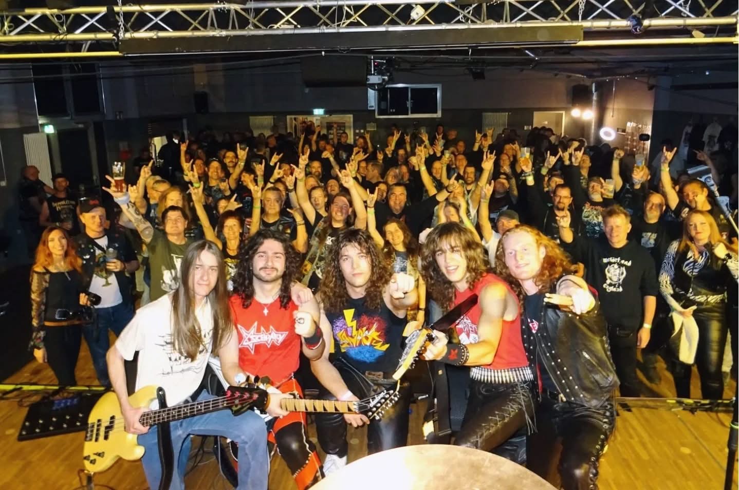 eine feine Abordnung, incl. Next Generation der Metal Front Holledau bei den legendären Sky Eye aus Slowenien!🤘los geht’s mit Don‘t Drop The Sword!feiner Auftritt!weiter gehts mit den Lokalmatadoren aus Abensberg, den Thrashern von Antipeewee!💪dann der Headliner…..🤘🤘überragender Auftritt vor leider überschaubarem Publikum! die, die da sind geben alles!🔥……..unser ‚Badda‘ noch mehr! Ansage vom Sänger:“ Everybody looks at this guy! He sings every single word with us!“😳💪😅…….das wird dann auch noch mit einem Abschiedsfoto belohnt! geile Mucke und total nette Typen!🤘🤩🔥