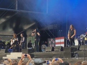 …..und dann kommt der King…..King Diamond…..und auch wenn es sich vor der Bühne etwas lichtet……..……der erste Auftritt in Deutschland seit Jahren und was soll ich sagen…….legendär…..stimmlich überragend, sämtliche Mitglieder der Band beherrschen ihre Instrumente, unglaublich! Unter den vielen Highlights, Highlight des Tages!die Gebeine schmerzen schön langsam, nach 10 Stunden auf dem Infield, die Sitzgelegenheiten sind stark begrenzt…….….bei Parkway Drive halten nur Matschek und Steffi die Stellung vor der Bühne…..der Rest macht Picknick auf der Wiese…….ist auch nicht so der Sound für uns Old School Metaller……🤷♂️…..bei HammerFall sind wieder alle dabei, das Infield ist jetzt voll besetzt, wir geben ein letztes Mal alles, auch wenn das nicht mehr viel ist…..😂 Bei der Zugabe ‚Hearts on Fire‘ gehts um kurz nach 1 zurück zum Auto und ab nach Hause. Ankunft frühmorgens um halb 4, alle erschöpft aber glücklich. Einhellige Meinung aller Mitfahrer: des war‘s auf jeden Fall wert!“ Weitere Abstecher auf Summerbreeze wahrscheinlich!🤗🤘